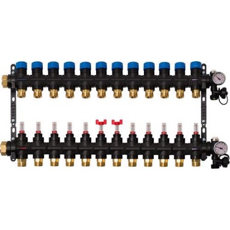 Henco collecteur composite chauffage sol 4/4"-12x3/4"EK (débimet/thermomet/purge/purguer d'air)